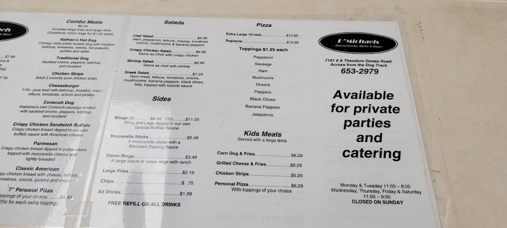 Discover the delightful flavors of Greece at D'Michaels, your go-to restaurant for mouth-watering gyros, cheesesteaks, and more. Located at 7101 Theodore Dawes Rd in Theodore, AL, we invite you to enjoy a casual dining experience perfect for lunch or dinner, whether you're dining solo or with friends. Our welcoming atmosphere features accessible seating and amenities for everyone. Offering both dine-in and takeout options, we take pride in serving traditional dishes with a local twist. Plus, we welcome reservations and provide a kid-friendly menu. Come savor a taste of Greece today!